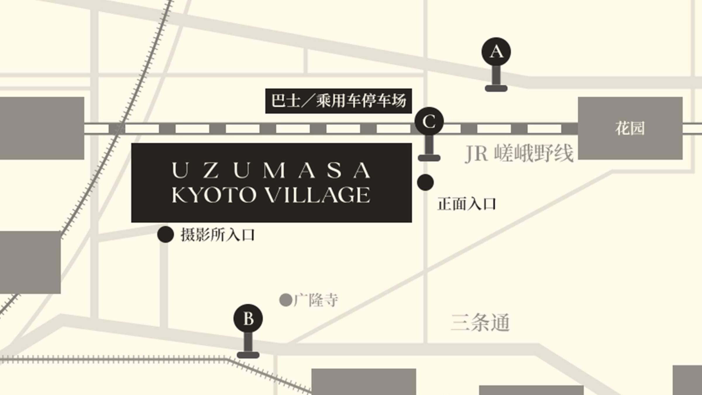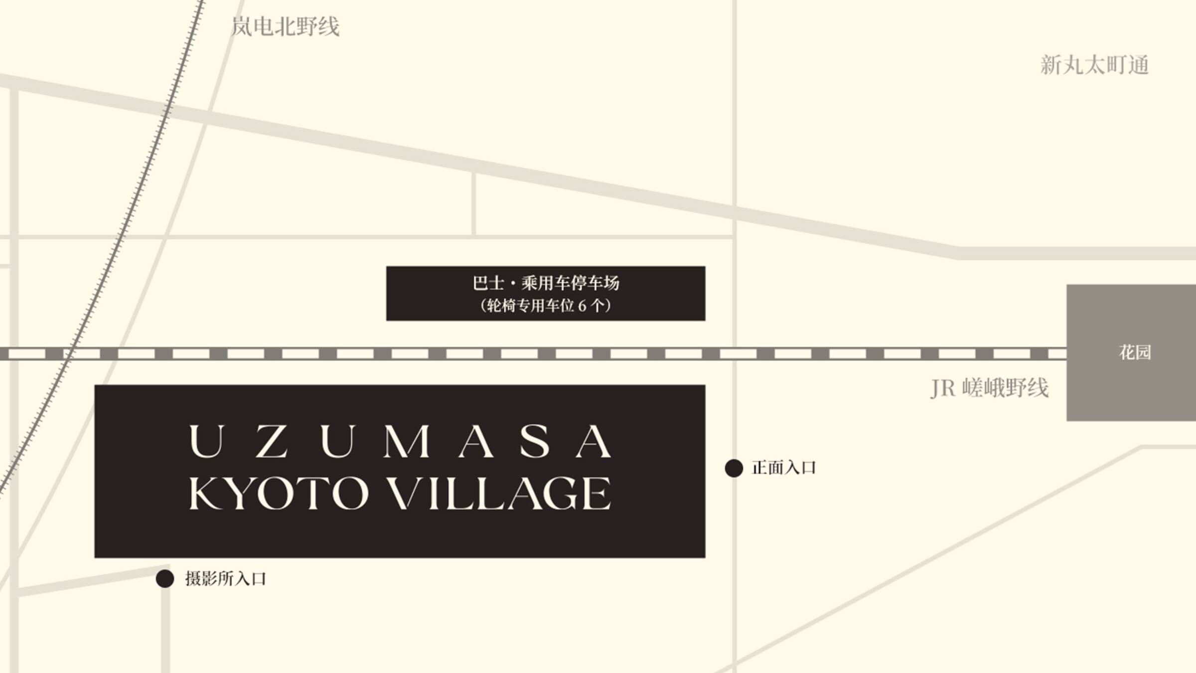 从岚电“作所庄前站”步行2分钟 / 从JR“涡正站”步行5分钟 *村庄入场截止时间为下午5点,入园截止时间为下午6点