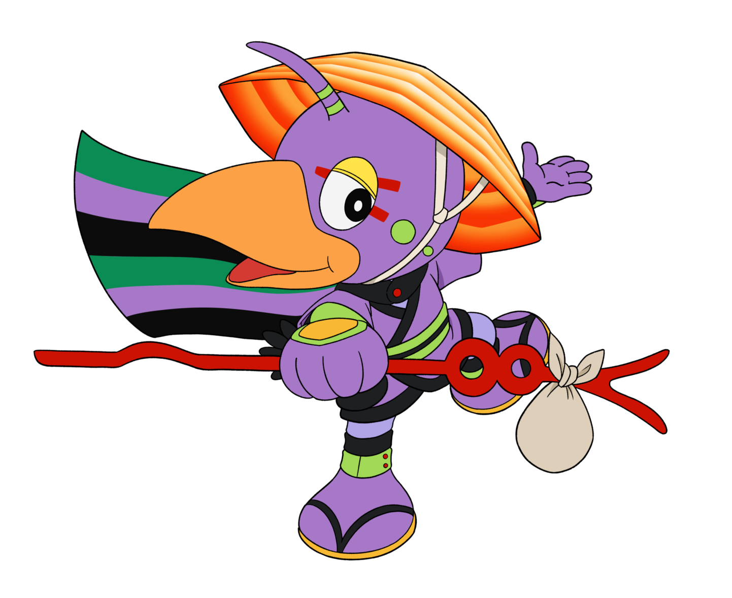 他携带一顶便于旅行的“三角帽式AT力场”,头上挂着一块風呂敷,系在“朗基努斯之杖”(托卡钦·塔里翁认为这是乌鸦世界首领的象征)上,每日四处游历。“朗基努斯之杖”是一根隐藏的法杖,有时他会被迫用它来斩杀来袭的天使。